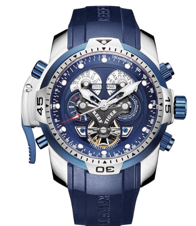 Reef Tiger’s extensive catalog showcases a diverse range of styles that fuse contemporary aesthetics with precision craftsmanship. From sleek stainless steel cases to multi-faceted ceramic bezels, Reef Tiger uses premium materials to match the complexity of its watch designs. The brand sources automatic movements from renowned Swiss and Japanese manufacturers to ensure optimal timekeeping.